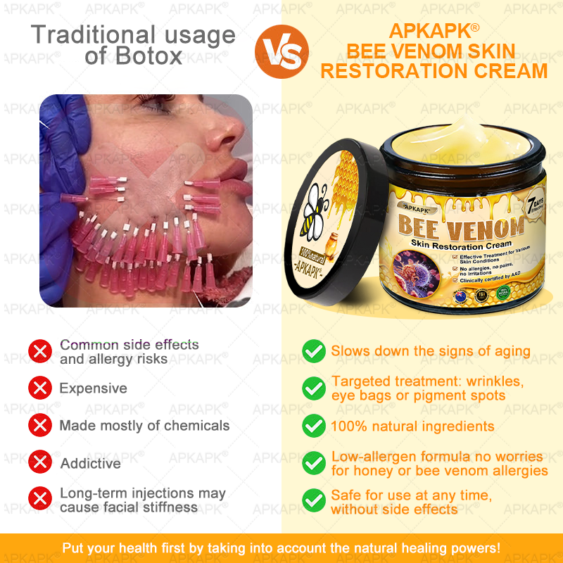 ✅ Scientifically Formulated: The formula of APKAPK® Bee venom Comprehensive Cream is scientifically developed to maximize its effectiveness in promoting skin rejuvenation and enhancing your overall appearance.